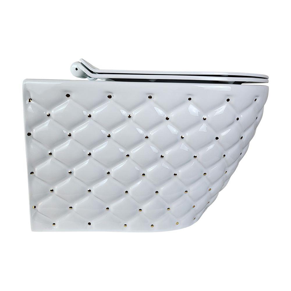 Kapitone Dot Beyaz Altın Kanalsız Asma Klozet